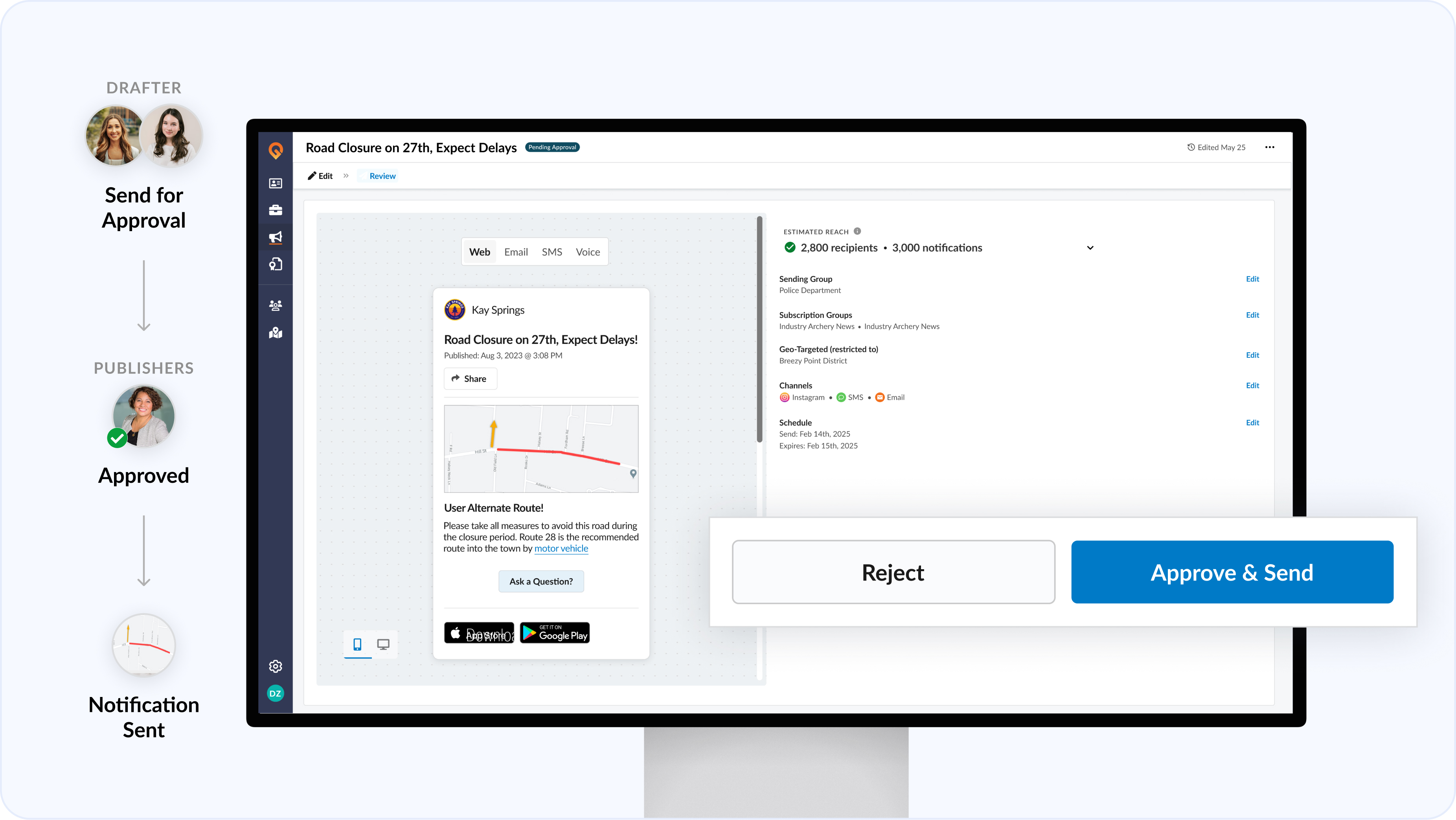 One of the biggest concerns we hear from local government communications teams is the fear of sending a message with an error—a typo, incorrect information, or outdated details that could confuse residents or damage trust. The new workflow management features in our citizen notifications platform eliminate this risk while making your team more efficient.