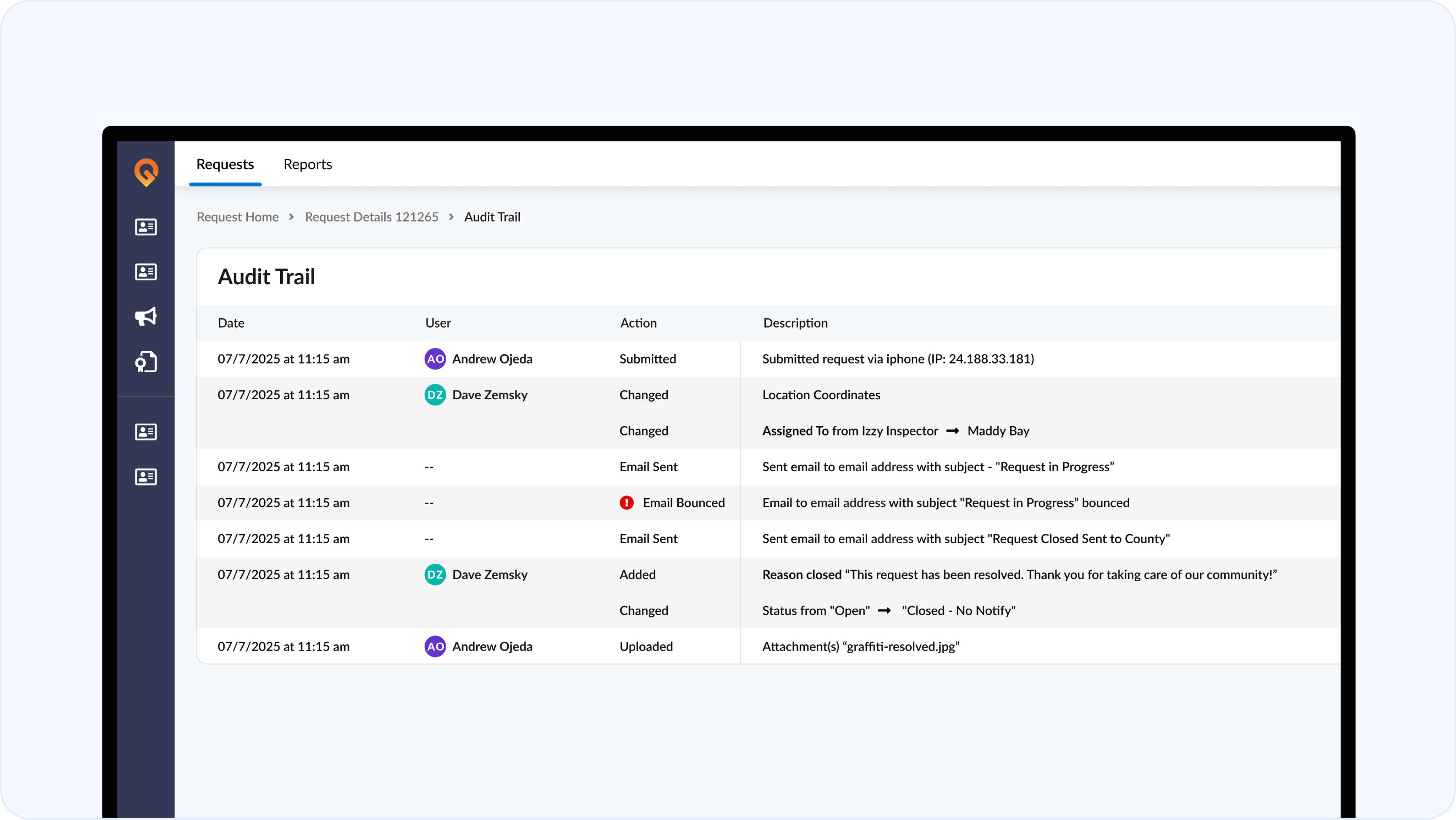 For City Managers and Administrators: The unified record view and audit trail redesign give you a cleaner picture of what's happening across departments. Survey results surfaced on each request make it easier to identify where service delivery is falling short before it becomes a council issue.