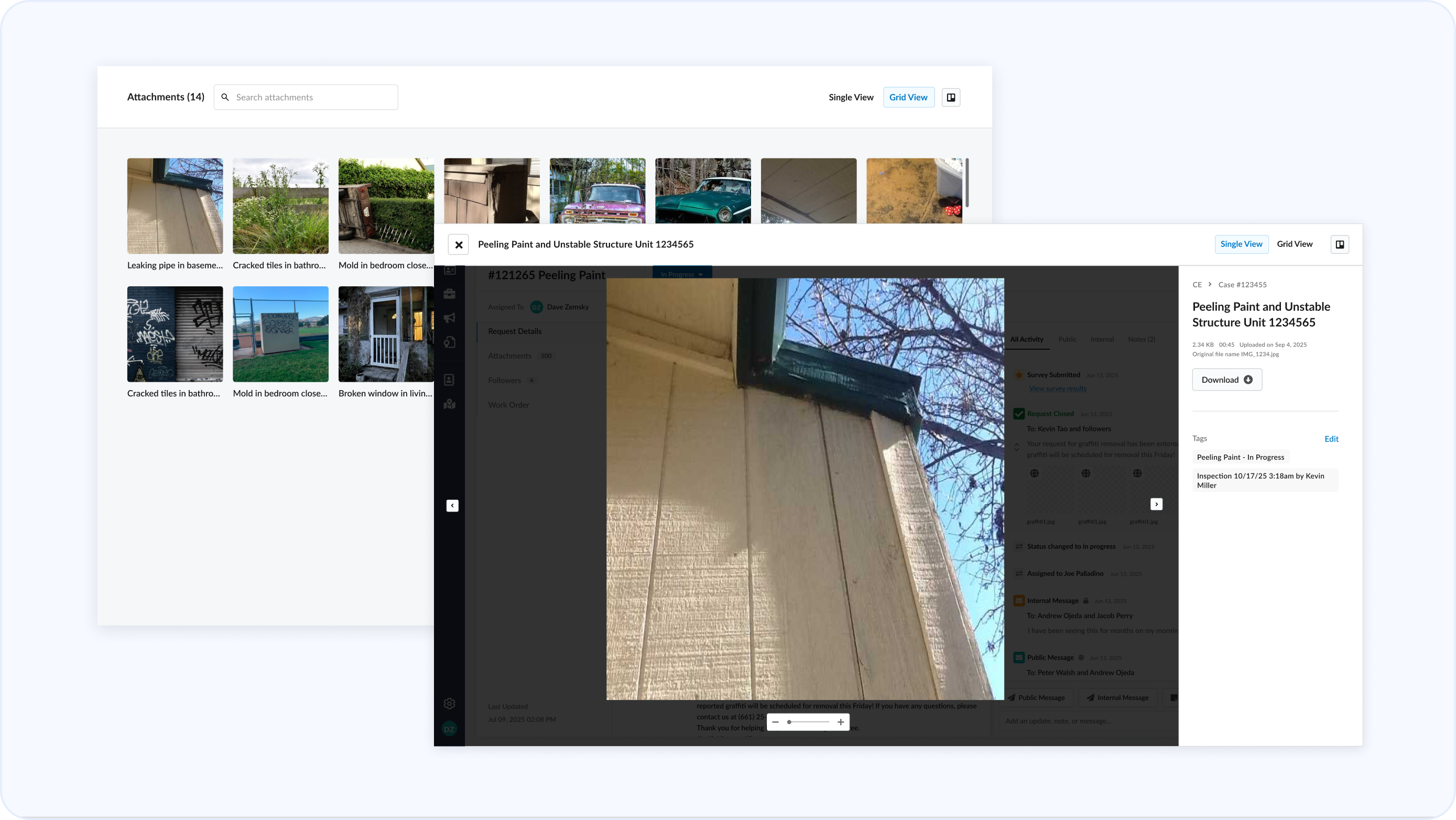 Switch between Inspections, Communications, Letters, and Notes with focused tabs that surface exactly what you need, faster. Or view everything in one continuous timeline for richer context.