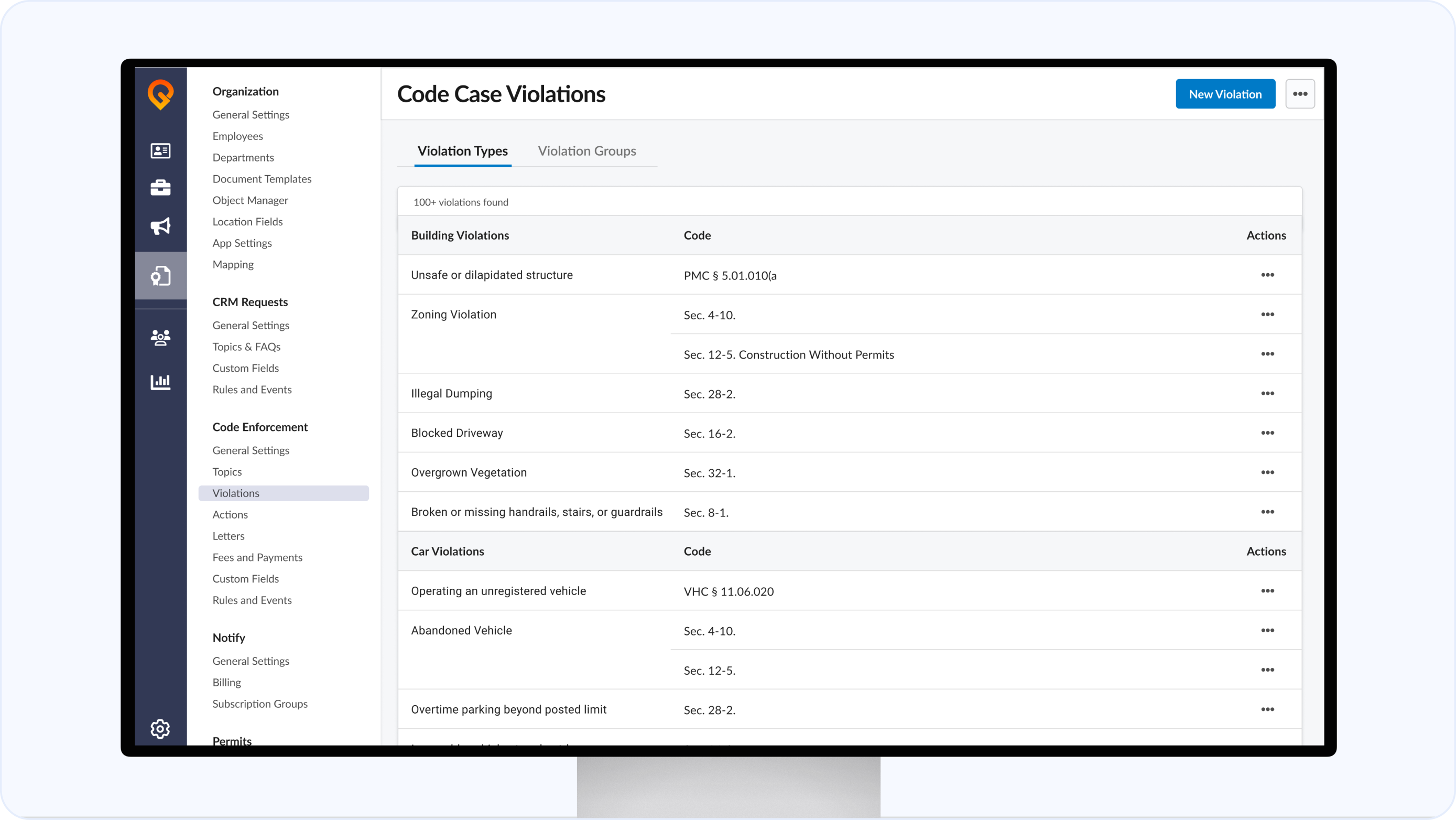All configurations — fees and payments, actions, enforcement topics, violations and groups, rules and events, geolookup, and letters — have been fully moved from the legacy system into the new Admin interface for faster setup.