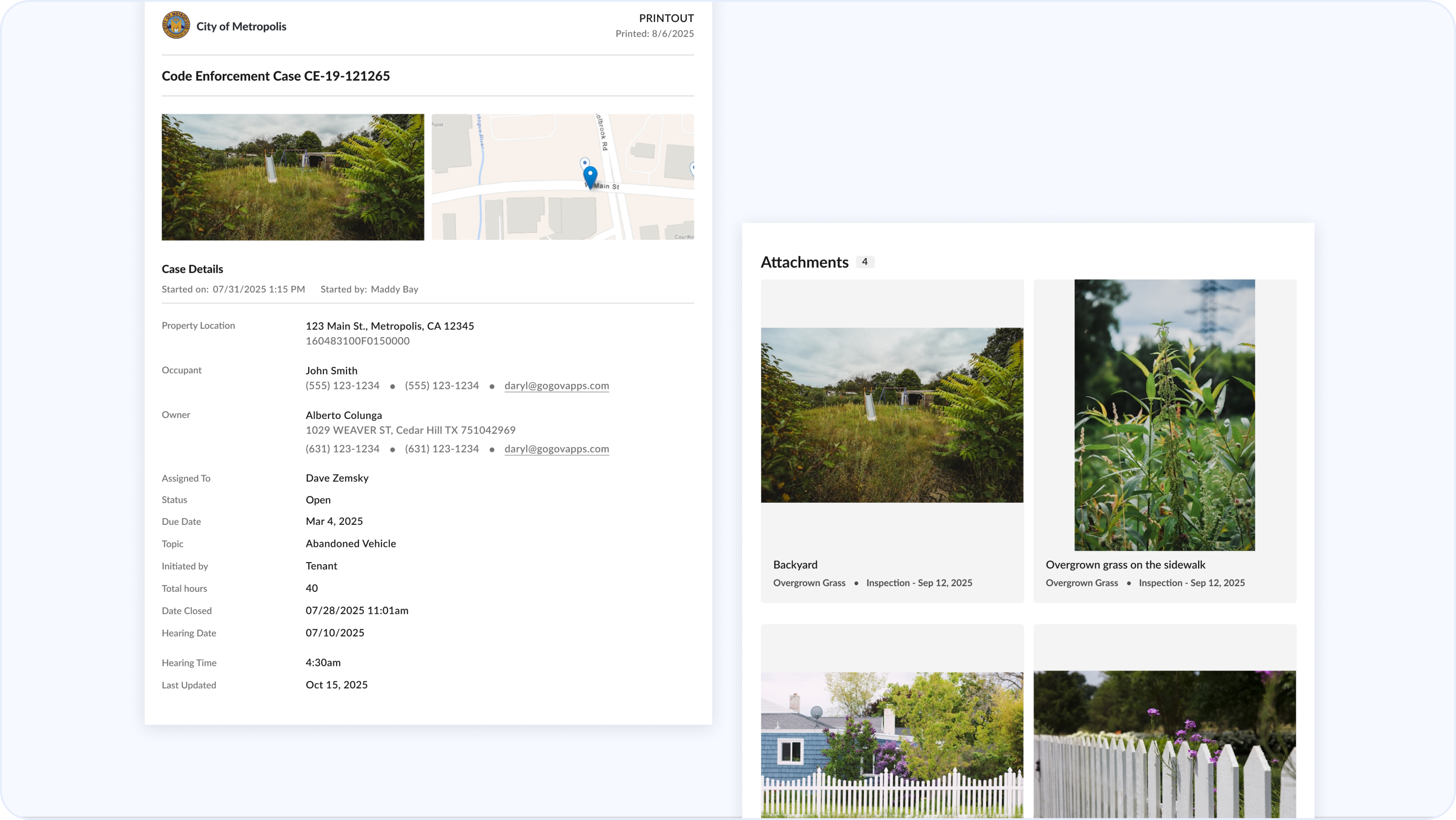 Case printouts now include attachments with visible tags, showing the related violation, action type, date, and author — giving legal documents stronger context and credibility while reducing administrative burden.