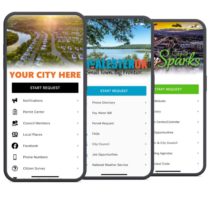 Give residents a fully branded mobile app with your municipality's name and logo — included at no additional cost. Deployed on iOS and Android in just a few weeks.