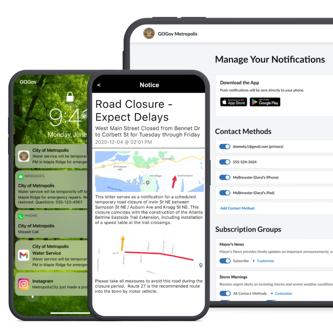 Getting from point A to point B is always important. Keep your citizens in the know with important updates for construction, weather and more..